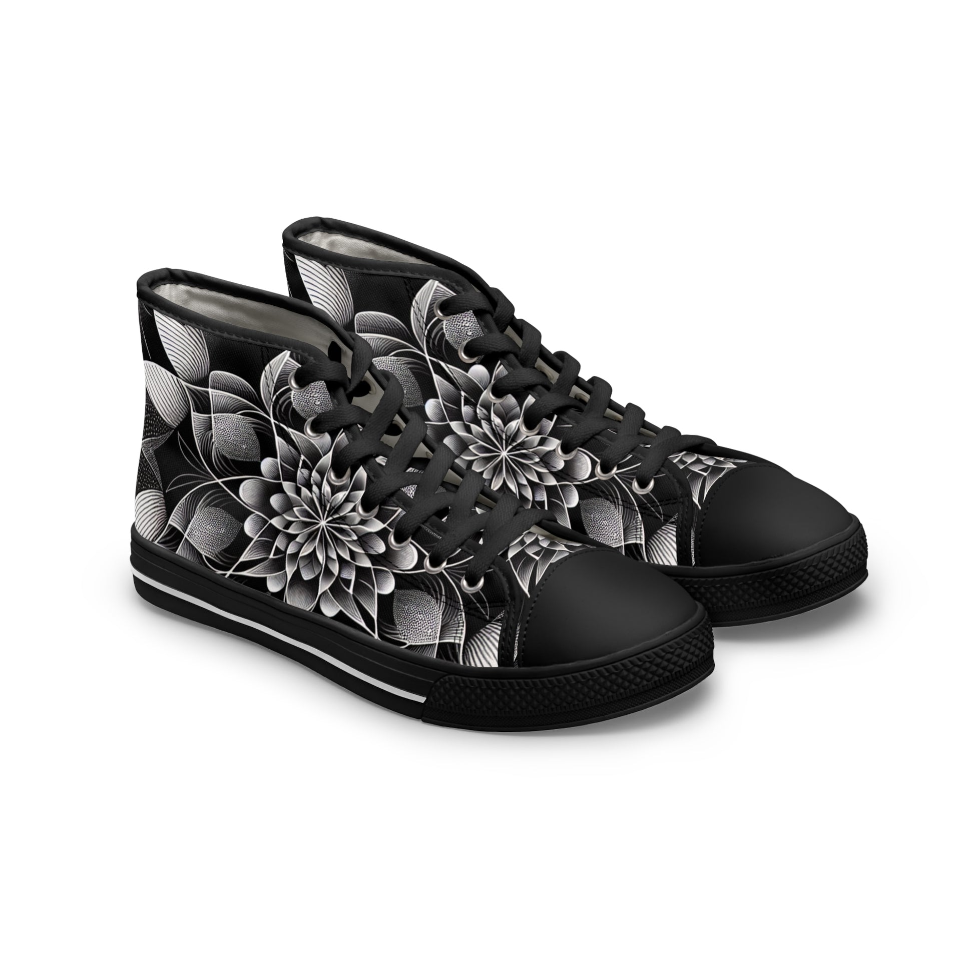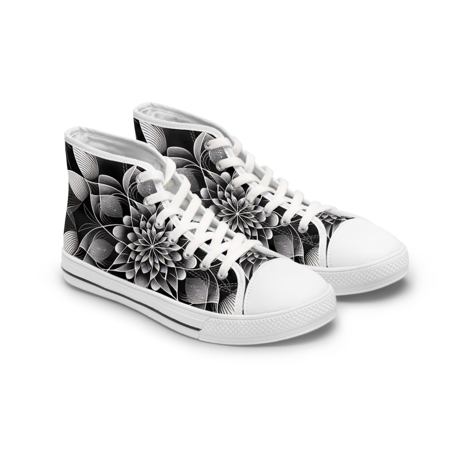 Made with breathable polyester canvas and featuring hi-poly deodorant memory foam insoles, these women's high top sneakers bear all the marks of an awesome shoe. Choose between black or white sole and laces, and enjoy the silver metal eyelets along with the lace-up closure. Add your designs and bring a bespoke staple to life.