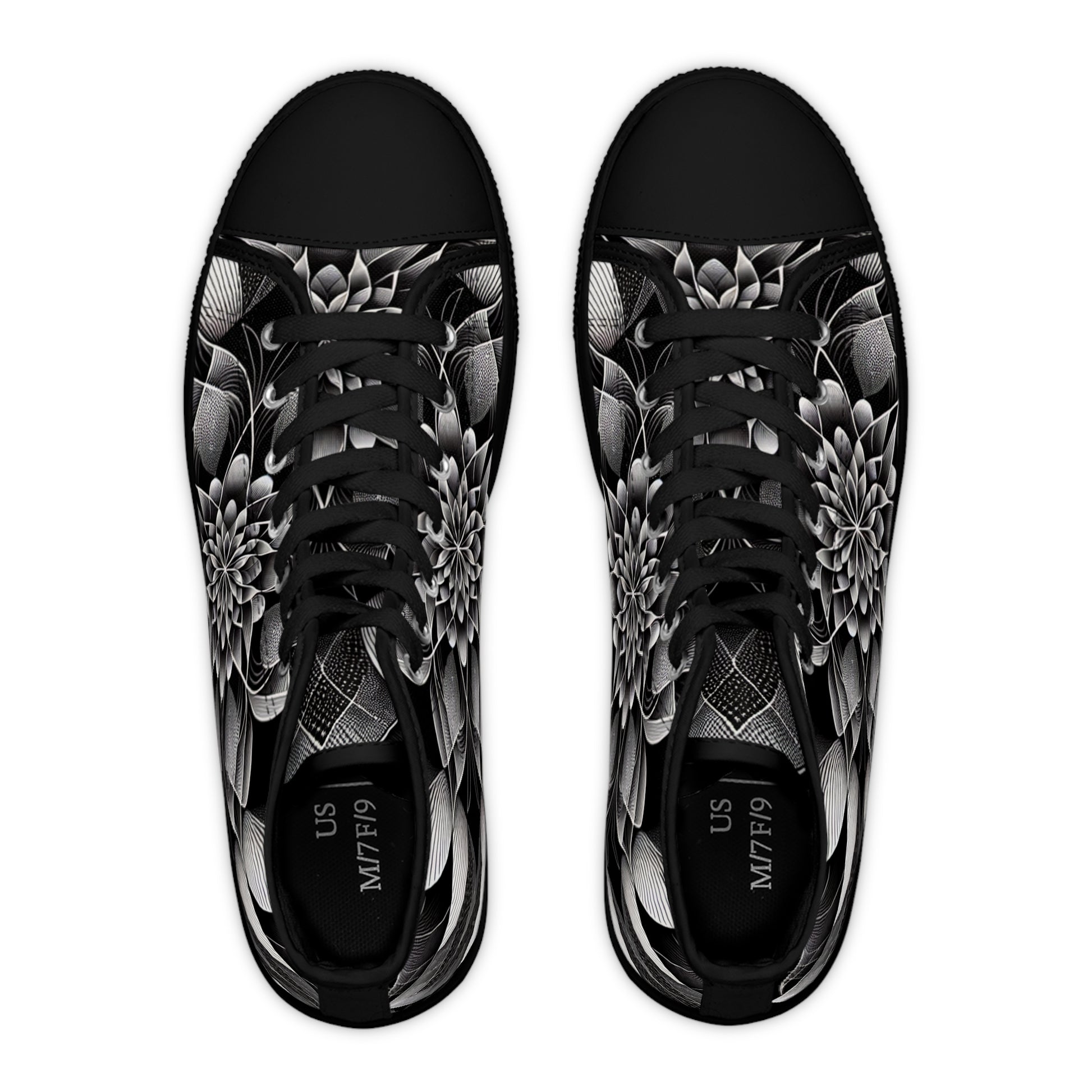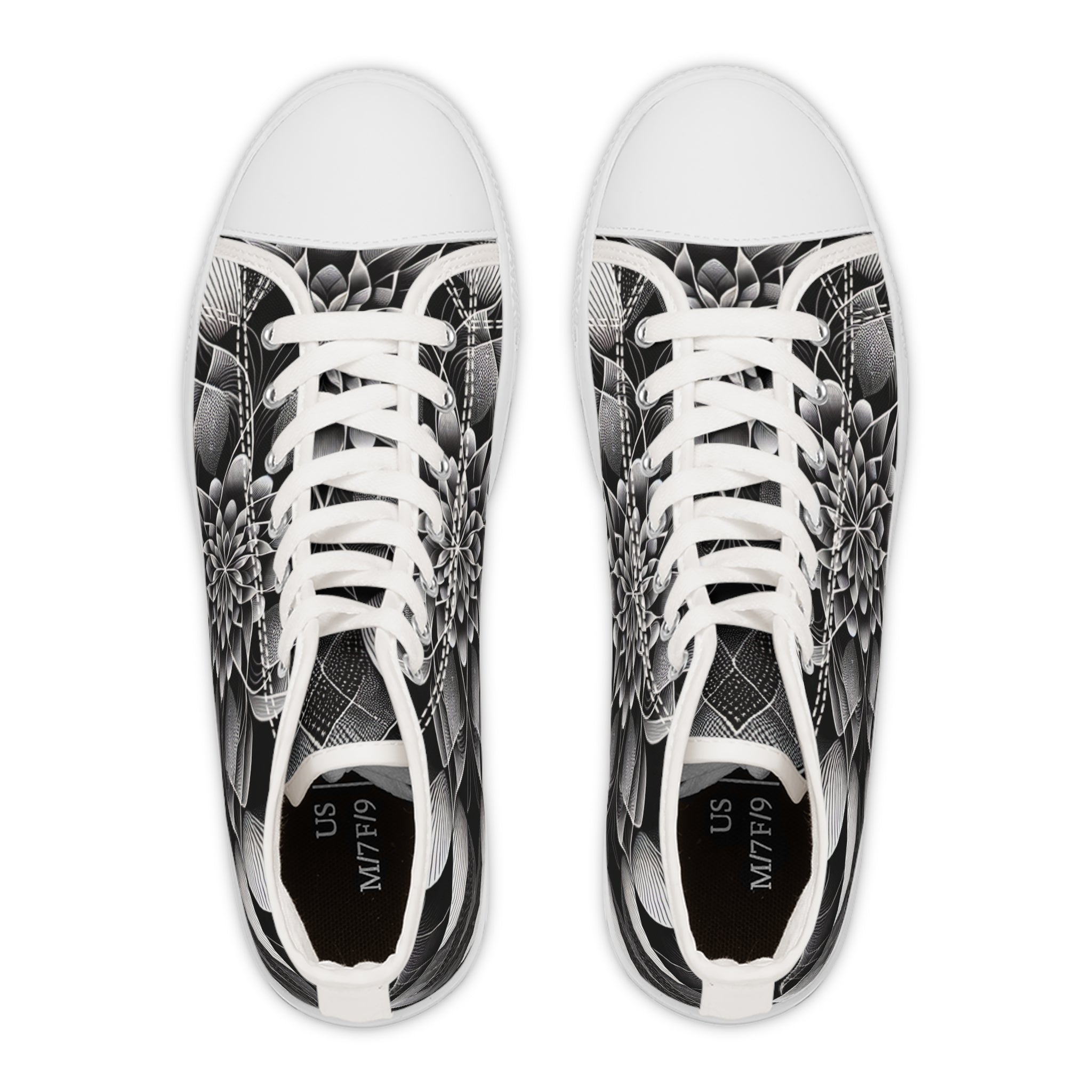 Made with breathable polyester canvas and featuring hi-poly deodorant memory foam insoles, these women's high top sneakers bear all the marks of an awesome shoe. Choose between black or white sole and laces, and enjoy the silver metal eyelets along with the lace-up closure. Add your designs and bring a bespoke staple to life.