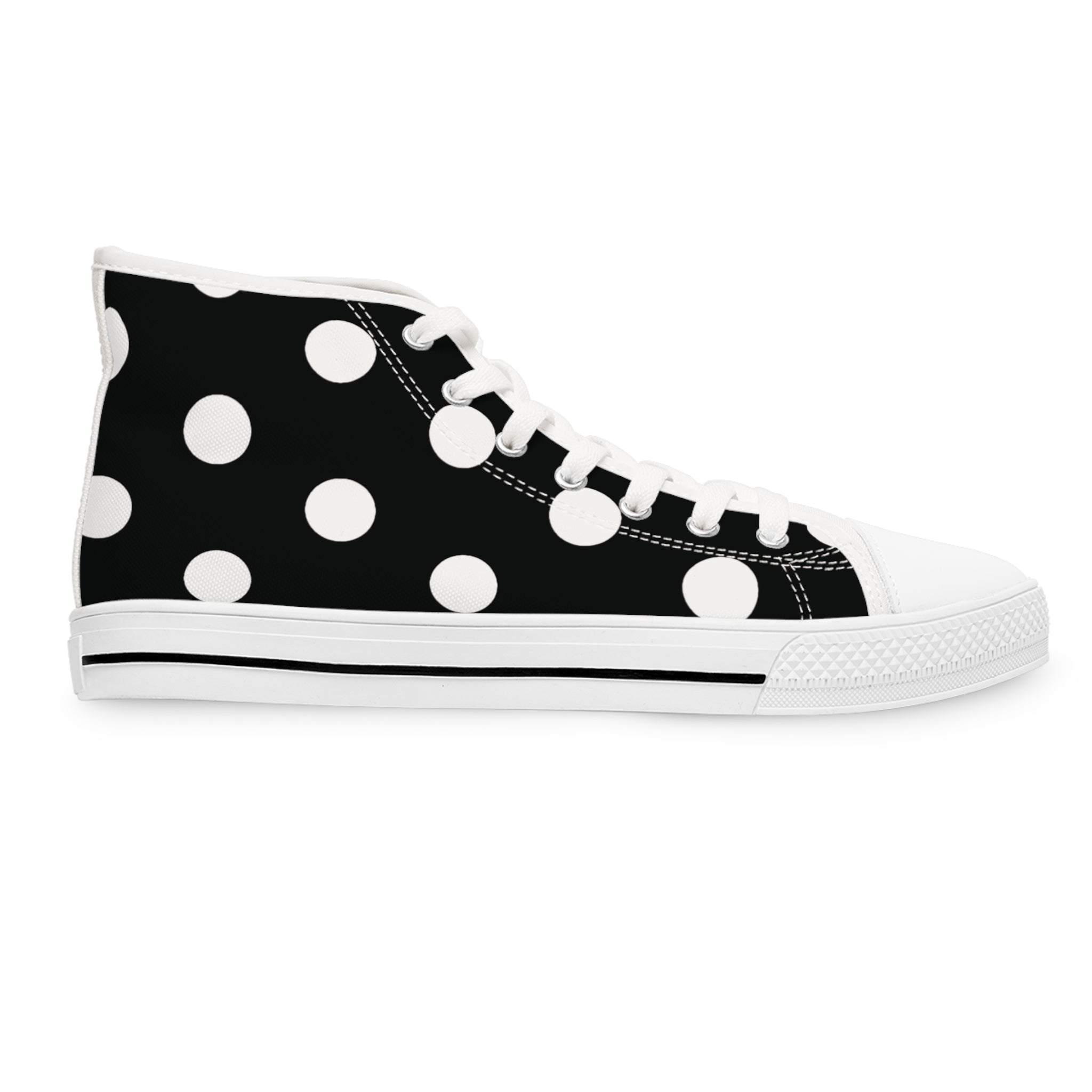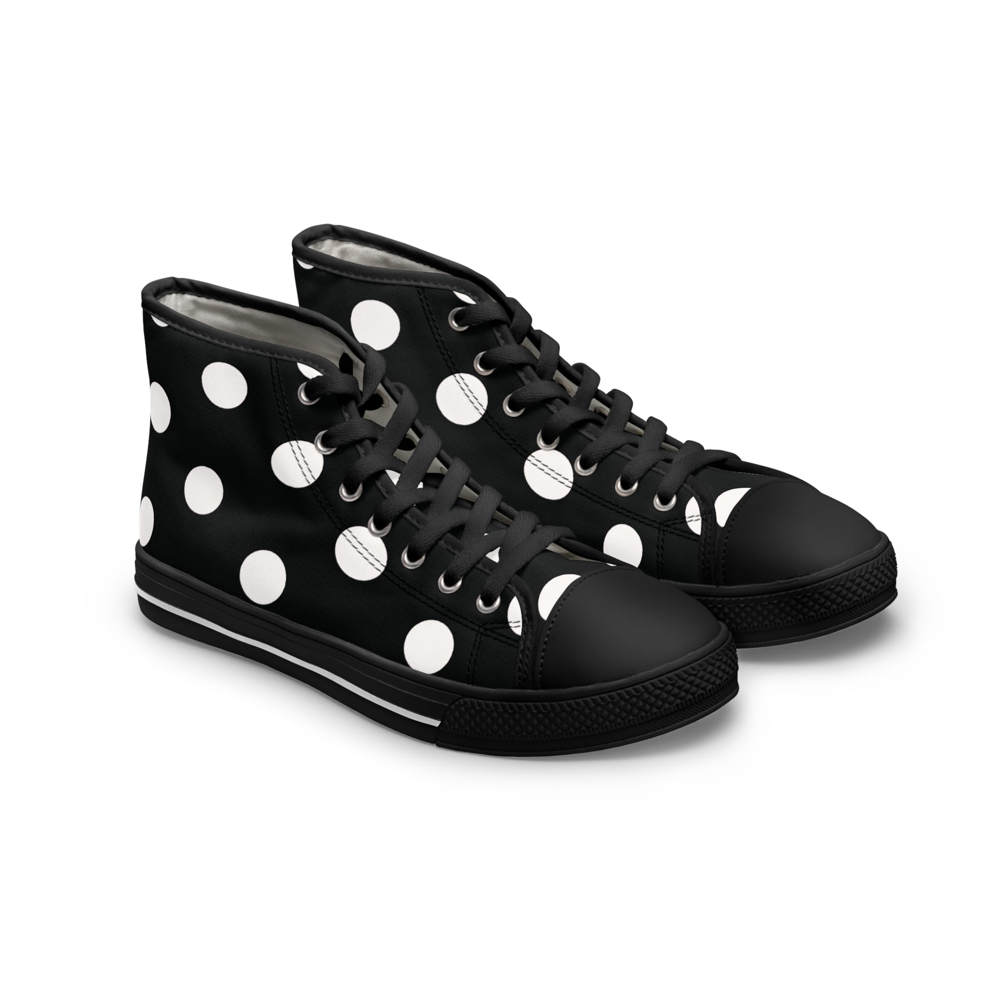 Made with breathable polyester canvas and featuring hi-poly deodorant memory foam insoles, these women's high top sneakers bear all the marks of an awesome shoe. Choose between black or white sole and laces, and enjoy the silver metal eyelets along with the lace-up closure. Add your designs and bring a bespoke staple to life.